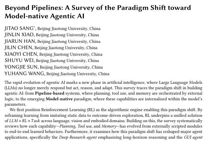 研究人员提出了一个激进的想法:与其不断地从外部调整这些流水线,不如让AI自己学会这些能力。这就像教一个孩子不是通过不断纠正他的每一步行动,而是让他通过尝试和失败来学会走路。这种新的方式被称为"模型原生"范式,意思是这些能力不再是外部强加的,而是内化在AI的参数中的。